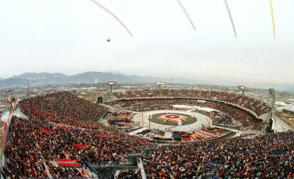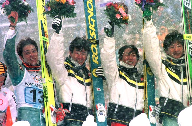 第18回長野冬季五輪は、20世紀最後の冬季五輪として、2月7日から16日間、長野市を中心に開催された。日本での五輪開催は、72年札幌冬季以来で26年ぶり3度目。長野大会には72カ国・地域から選手・役員3766人が参加し、冬季五輪としては史上最大規模となった。日本勢は計10個のメダル(金5、銀1、銅4)を獲得した。 写真は入場行進する日本選手団